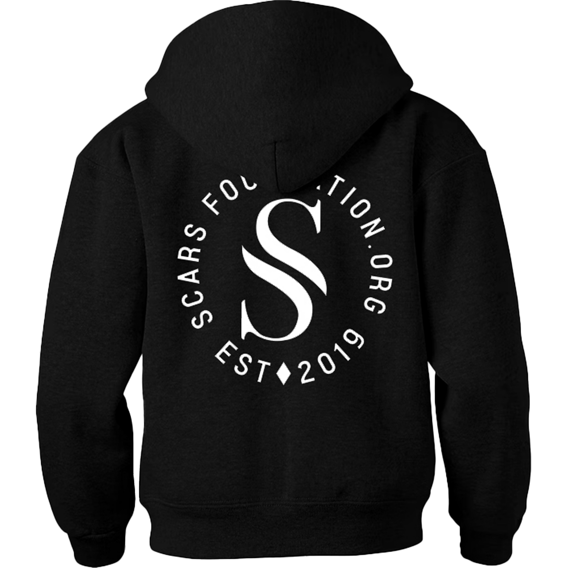 The proceeds from the sale of this Scars Circle Logo Zip Up Hoodie will go to benefit those programs with a proven track record of effectiveness in addressing mental health.